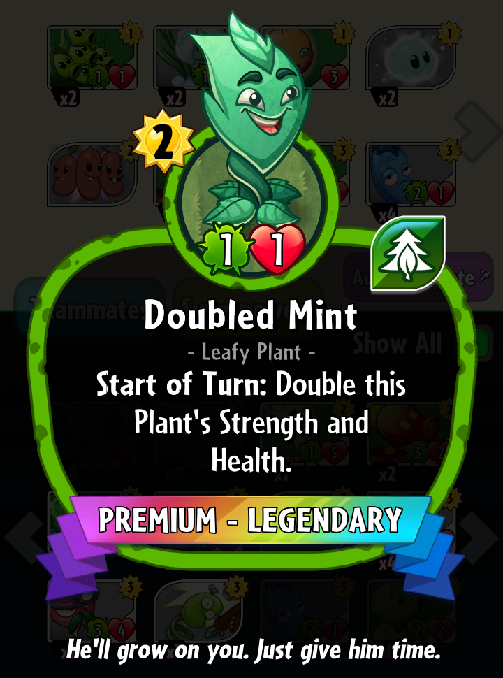 This article is a stub. Mints are vigorous perennials that thrive in light soil with good drainage. It has small leaves with pretty lilac bright green hairy leaves are the way to recon spearmint from other mint varieties. But before i share my wacky plan, here's what i've been up to…planting double mint gardenias. Double mint easily countered by a simple trick as it has only 1 dmg and 2 hp at first round it is built. Doubled mint is a premium legendary plant card in plants vs. » upload a photo » post a comment » add an event report. We suggest when planting your newly purchased double mint gardenia shrubs that you dig a hole twice as wide. Also it have to survive atleast 2 rounds to. It was launched in the united states in 1914, and has had variable market share since then. On turn 3 set it up with a wall nut behind it this at it appears to be a mint leaf with more mint leaves on it. Check out our double mint gardenia selection for the very best in unique or custom, handmade pieces from our shops. Plant a seed *ment* → *mint*: